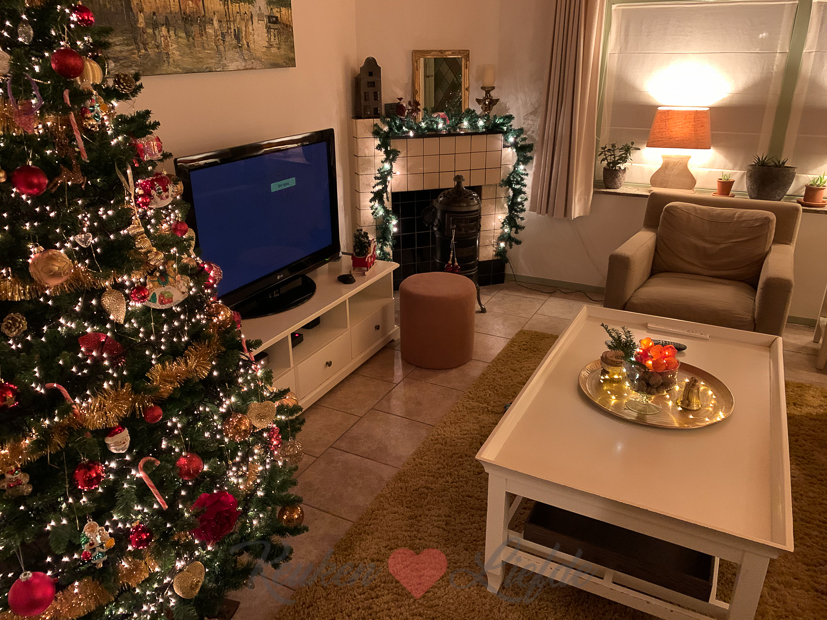 - De guirlande op de schouw is nog niet af, maar hangen we alvast op