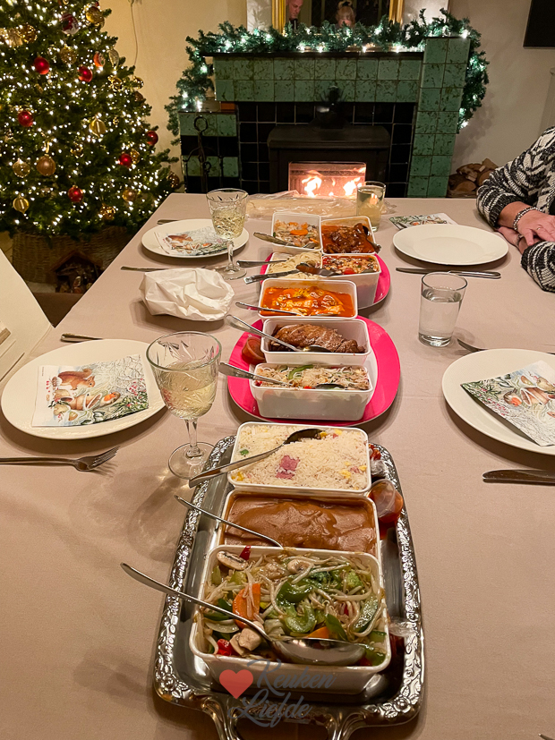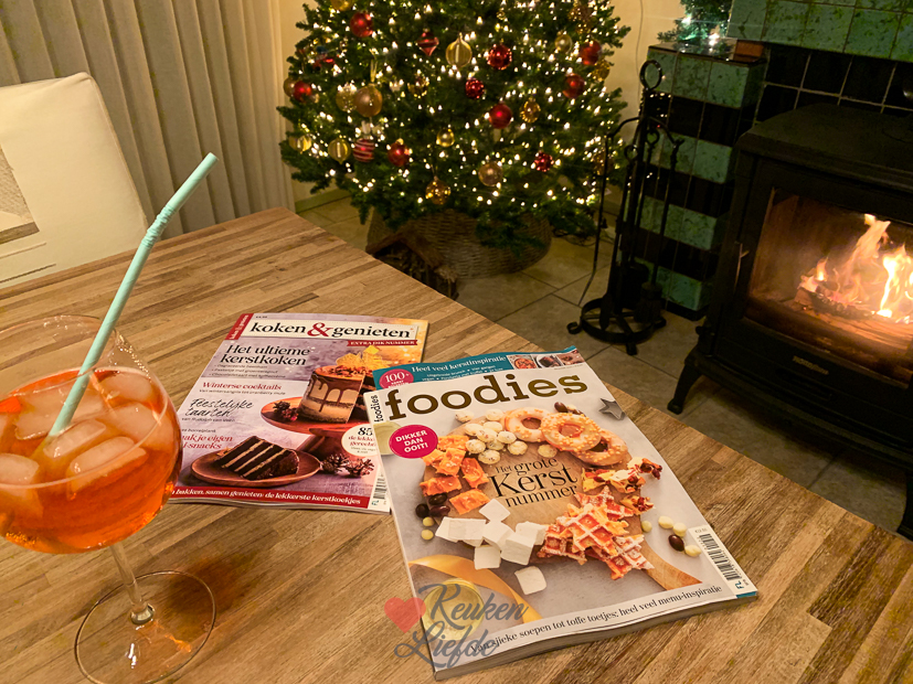Er was nog veel Chinees over van gisteren dus vandaag (en morgen!) hoef ik niet te koken. Voordat we gaan eten drinken we een aperitief bij de houtkachel en blader ik de nieuwste kerstedities van Foodies en Koken & Genieten door. Zo heerlijk om inspiratie op te doen. Heb jij je kerstplanning al rond? Blijf je thuis en ga je koken, ga je op visite of misschien lekker uit eten? Tell me, ik ben benieuwd! Afgelopen week ging ik ook verder met het versieren van de kerstboom. Ik wilde dit jaar eigenlijk alleen voor goud gaan maar we vonden hem allemaal te saai. En dus trok ik toch de rode ballen weer uit de doos.