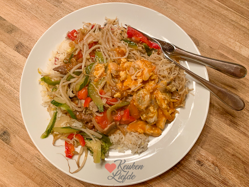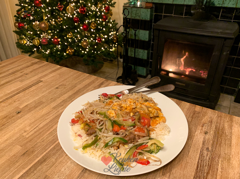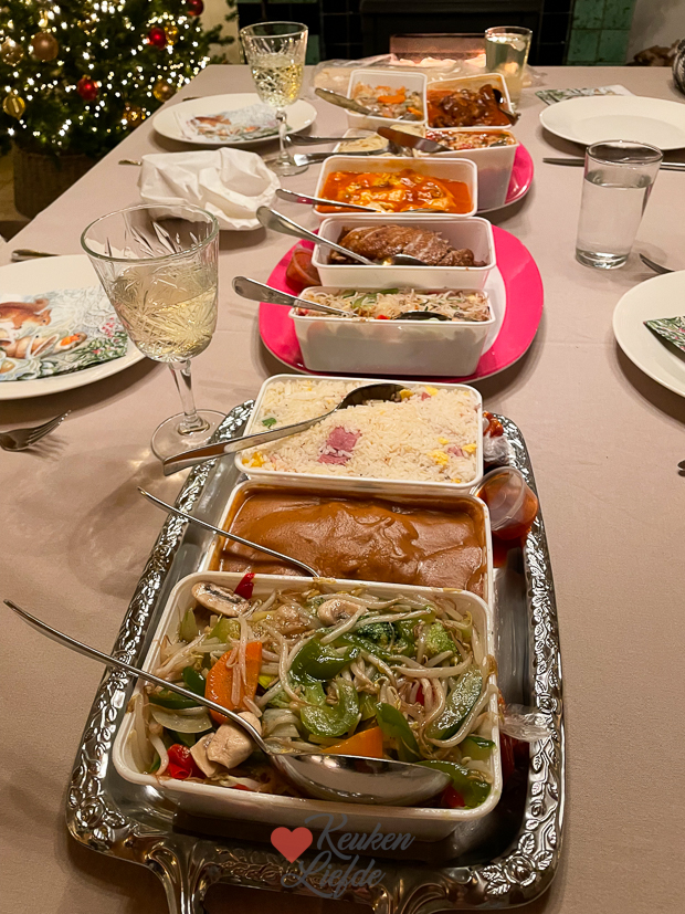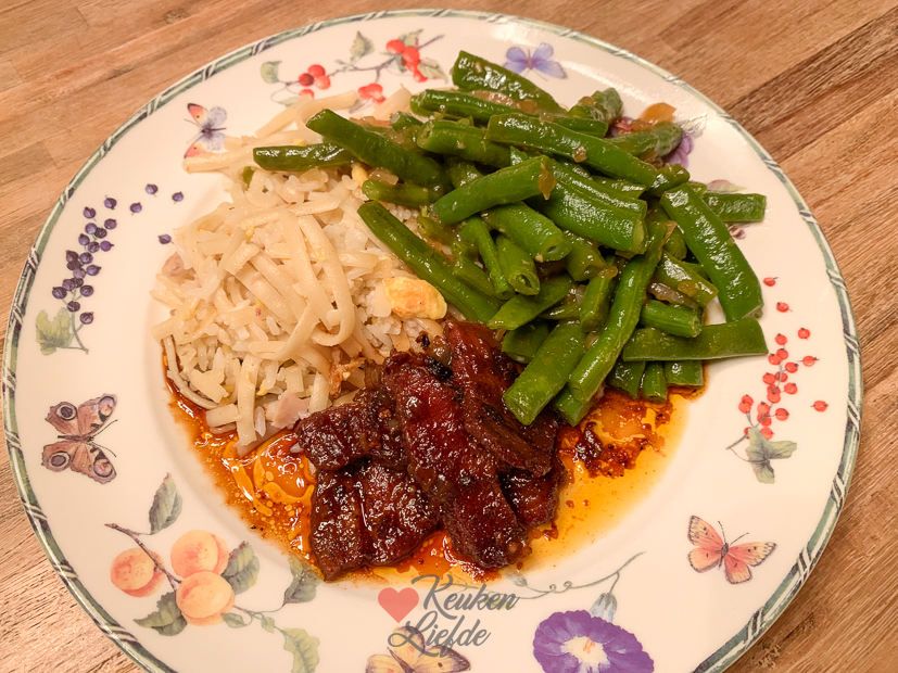 Johan is vrij vandaag en ik heb een kookdag. De meeste gerechten die ik maak worden direct of in de loop van de dag verorberd. Gelukkig hoef ik ’s avonds niet weer te koken want er is nog wat, jawel, Chinees! We warmen kliekjes nasi en bami op en Johan maakt er speklapjes in ketjapsaus en sajoer boontjes bij.