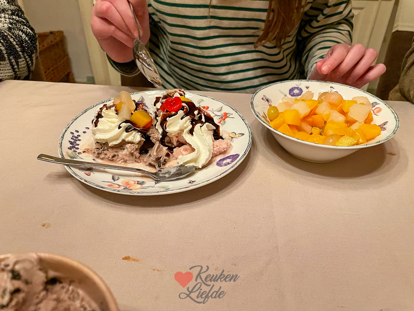 Vandaag is het feest want mijn toyboy is jarig! 🥳 Johan is vandaag 39 jaar geworden. Het is een echte feestweek want aankomende zaterdag word ik 42 jaar. Johan is vandaag lekker vrij en rommelt thuis wat aan. Ella-Marie heeft toetsweek en hoeft ’s ochtends alleen naar school voor een biologie en Engels toets. Voor mij is het een gewone werkdag die ik grotendeels besteed op kantoor. Ik vermaak me onder andere met het schrijven van het Kijkje, beantwoorden van mails en het uitwerken van recepten. ’s Avonds komen Johan zijn ouders bij ons eten en wordt er een Chinese rijsttafel gehaald. We hadden een lekker ijsje van de boerderijwinkel na met vruchtjes uit blik, slagroom en chocoladesaus.