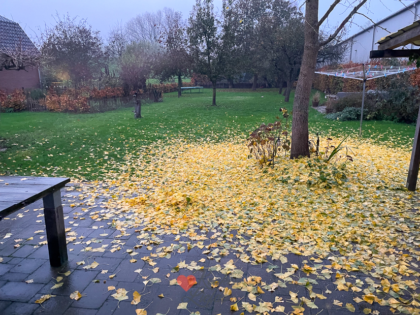 Gisteravond zeiden mijn ouders dat de boom achter ons huis zo mooi was. Het is een Japanse notenboom en in de herfst kleurt het blad prachtig goudgeel. Als ik ’s ochtends beneden kom en uit het raam kijk is hij helemaal kaal. In één nacht tijd is al het blad gevallen. Naast blad ruimen doen we vandaag niet zoveel. ’s Middags komt de Sint met de boot aan in ons dorp en komt de stoet op weg naar het Pietenhuis ons huis voorbij. Al die blije en opgewonden snoetjes erachteraan, zo’n leuke tijd weer!
