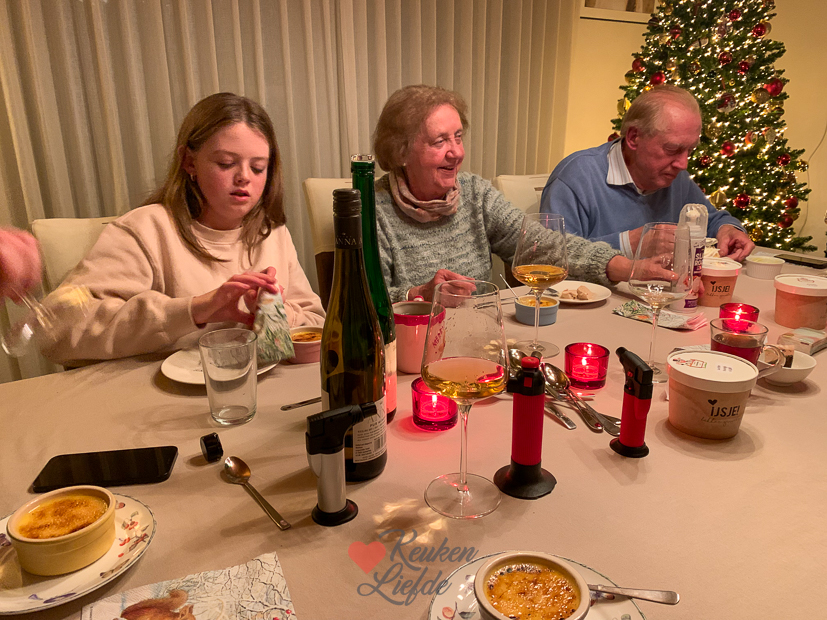 Vandaag ben ik jarig en sta ik weer in de keuken. Mijn ouders en broers komen vanavond bij ons eten. Het verjaardagsdiner bestaat uit zuurkool met casselerib en zuurkoolspek (gestoofd in half zoete Riesling en half ananassiroop uit een groot blik ananasschijven), aardappelpuree (ik maak hem romig met slagroom, melk ((meer slagroom dan melk)) en een flinke klont boter), rook- en knakworsten, uitgebakken spekjes, ananas en gehaktballen met jus (ik bak de ballen eerst aan in de braadpan en doe ze dan samen met de fond in de slowcooker. Uurtje of 3, 4 op stand high.) Als toetje maak ik crème brûlée. Als hapje vooraf maak ik casinobroodjes belegd met zalm en Hollandse garnalen (dit recept) en carpaccio.
