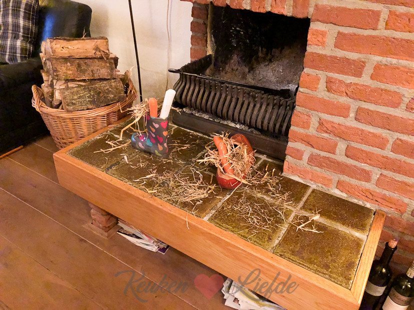 Ella-Marie was tijdens mijn gesprek met de uitgever bij mijn ouders en mocht daar haar schoen zetten. Deze foto stuurt mijn moeder door en roept oude herinneringen bij me op. Nostalgie!