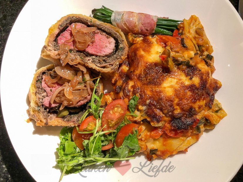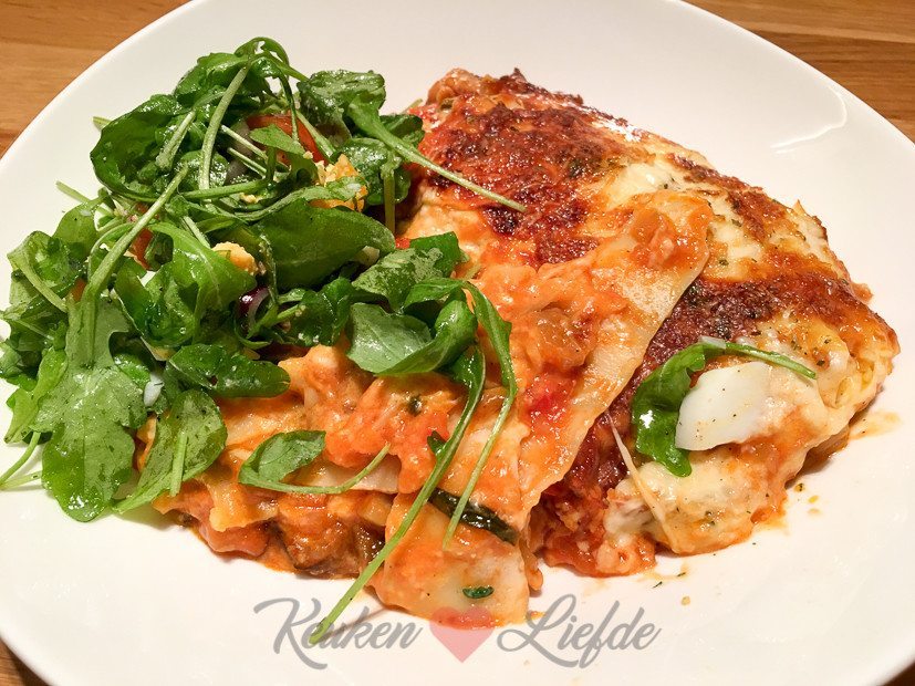 Johan en ik proosten ’s avonds op het boekcontract met een glas bubbels voor de openhaard en een bord dampende lasagne. Deze lasagne maakte ik trouwens zonder vlees, maar met lekker veel groente zoals courgette, aubergine en shiitake en een romige bechamelsaus met kaas. Volgens Johan is het de lekkerste lasagne die ik ooit gemaakt heb! Ik ben het met hem eens en daarom heb ik besloten dat het recept in mijn kookboek moet komen. Sneak peek #1! 🙂
