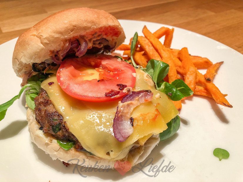 ’s Avonds eten we het ultieme broodje hamburger. Helaas zonder augurk, want die was op.