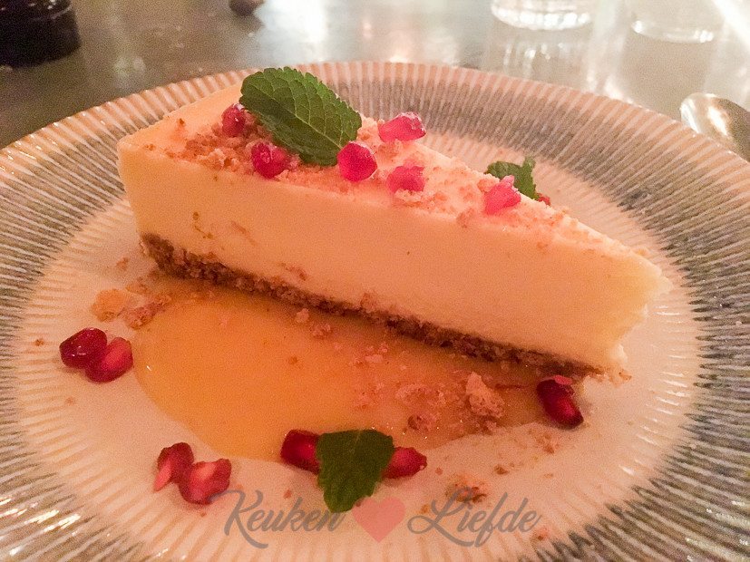 Als dessert neem ik de witte chocolade cheesecake met clementine curd, gestampte amarettikoekjes, granaatappel en munt (waanzinnig lekker!), Johan neem de klassieke tiramisù en Ella-Marie krijgt een heerlijke ijscoupe met chocoladesaus en hazelnoten.