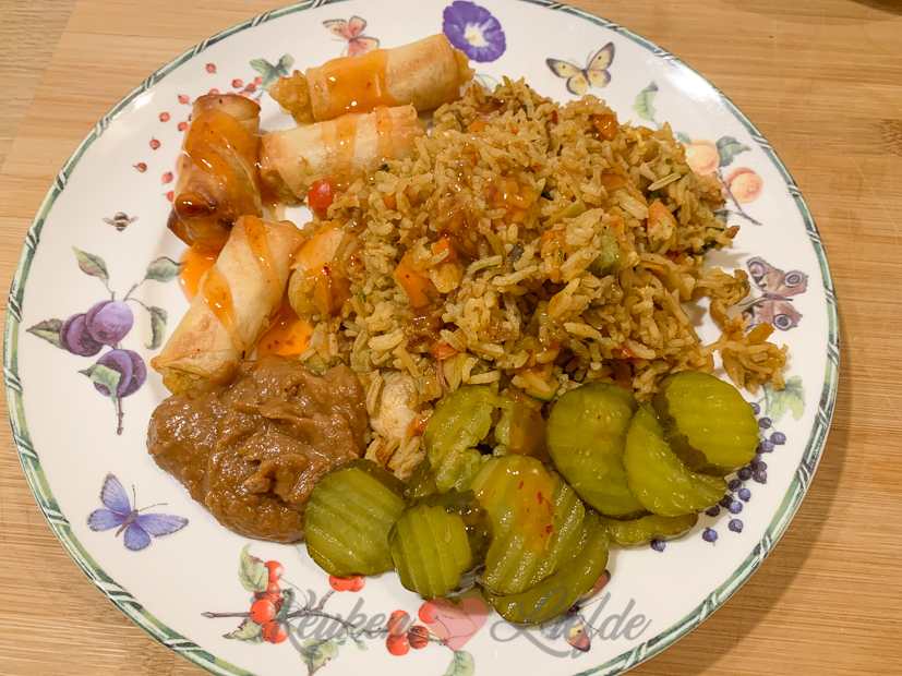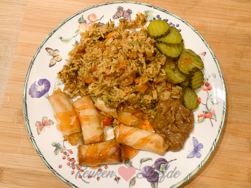 Ella-Marie heeft vandaag studiedag en is gezellig thuis. Terwijl ik op kantoor nog wat dingen moet doen, vermaakt zij zich onder andere met kruidnoten bakken en het luisteren van kerstmuziek. Gezelligheid! Voor het avondeten hoef ik ’s avonds alleen maar wat mini loempia’s in de oven te gooien en de nasi en pindasaus die over zijn van gisteren op te warmen. Heerlijk maandagavondmaaltje.