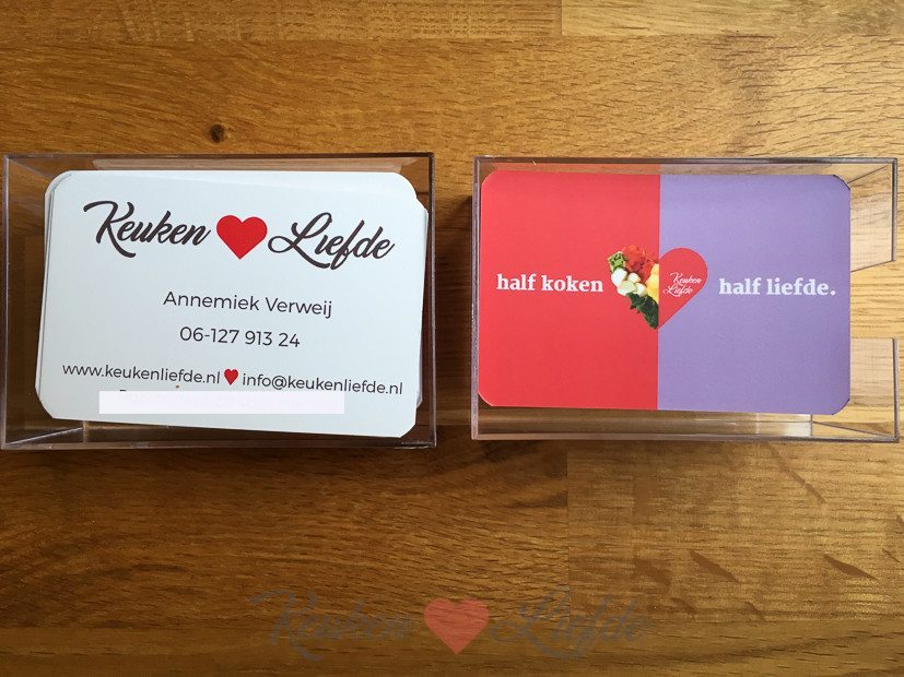 Ik krijg mijn visitekaartjes binnen van drukbedrijf.nl! In de KeukenLiefde-huisstijl. Ik vind ze zo mooi geworden! Benieuwd: wie van jullie gebruikt in dit digitale tijdperk nog ‘ouderwetse’ visitekaartjes? Ik vind ze namelijk nog steeds effectief. Jij?