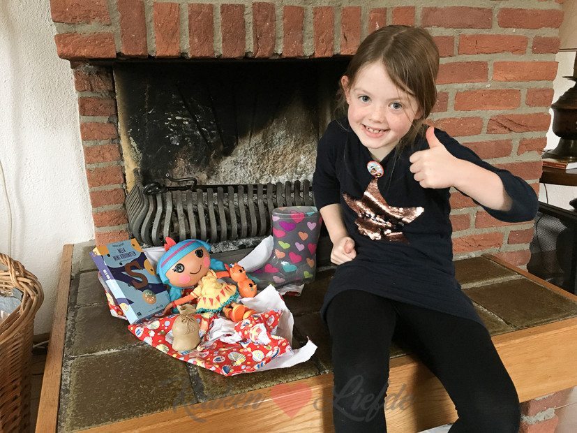 We rijden na schooltijd even bij mijn ouders langs, want Sinterklaas en Piet hebben daar wat achtergelaten voor onze kleine meid. Dank u Sinterklaasje!
