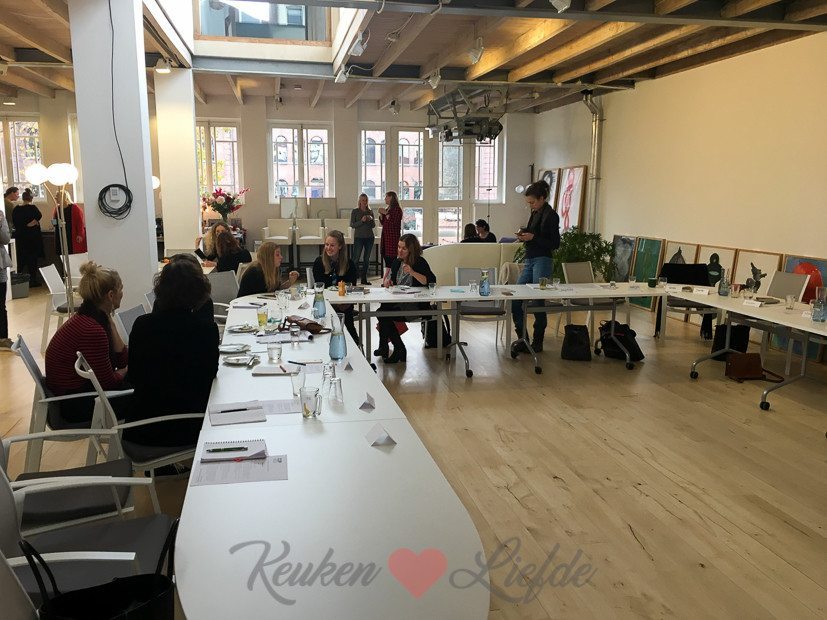 Johan en ik moeten in De Nieuwe Ruimte in hartje Amsterdam zijn. We zijn uitgenodigd om het succesverhaal achter KeukenLiefde te vertellen op de Masterclass Digitale Denkweg: een tweedaags programma dat traint in digitaal denken, bedoeld voor redactionele professionals met een achtergrond in de printjournalistiek, maar van wie in hun werk multimediale inzet wordt verwacht. We vonden het best een beetje spannend, maar het was superleuk! Iedereen was heel geïnteresseerd en er werden veel vragen gesteld die we gelukkig (bijna) allemaal konden beantwooden. 😉
