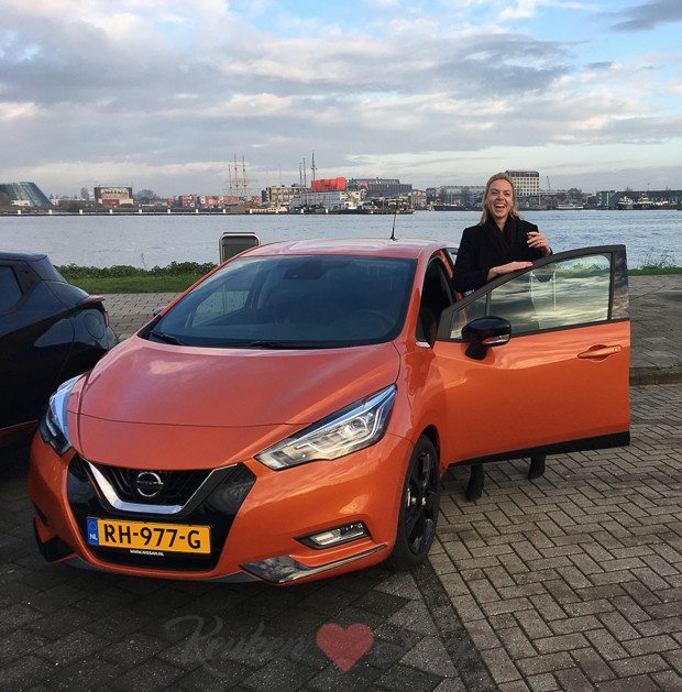 Johan zet me af bij het REM Eiland (restaurant) in Amsterdam, waar ik een lunch heb met Nissan. Na de lunch mag ik de sleutel in ontvangst nemen van een gloednieuwe MICRA. Joehoe, ik mag drie maanden lang in dit oranje snoepje rijden! Wat een bofkont ben ik. Nog voordat ik de snelweg op rijd ben ik verliefd. Wat een fijne wagen. Misschien zag je 0p Instagram en Facebook al wat voorbij komen, maar binnenkort vertel ik je meer over deze leuke samenwerking in een aparte blog.