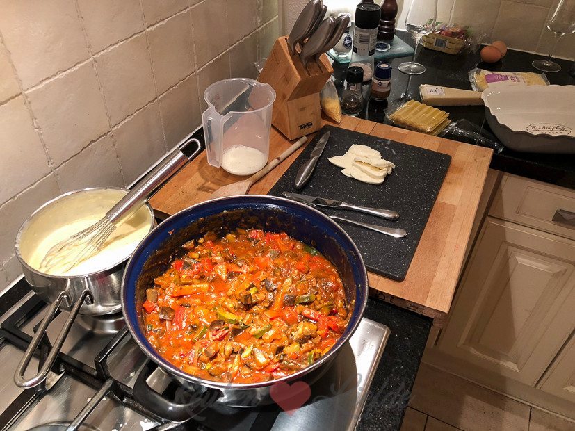 Ondertussen — terwijl ik in de vroege avondspits weer terug naar Tiel rijd — maakt Johan een dampende schaal groentelasagne. Jammie! Het recept hiervan staat niet op KeukenLiefde, maar komt wel in mijn kookboek. Nog even geduld dus. 🙂 #oktober2018