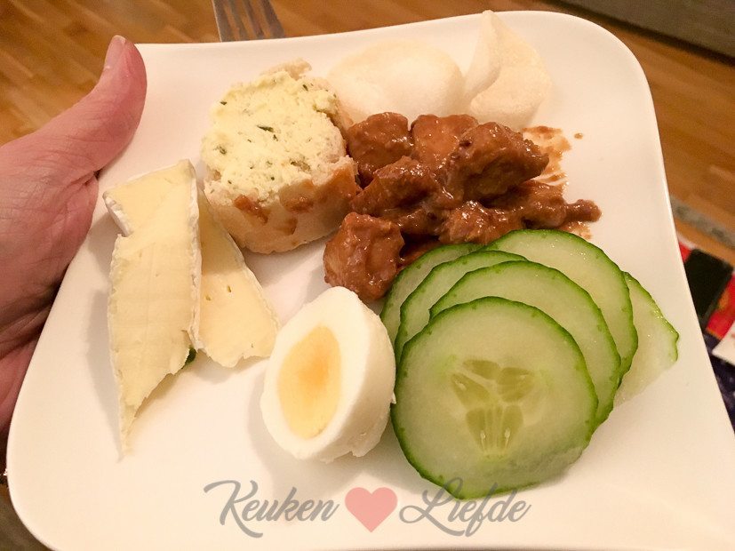 Na alle verwennerij en het uitpakgeweld gaan we lekker een hapje eten. Johan zijn moeder heeft allemaal lekkere dingen op het aanrecht uitgestald en iederaan kan zichzelf bedienen.