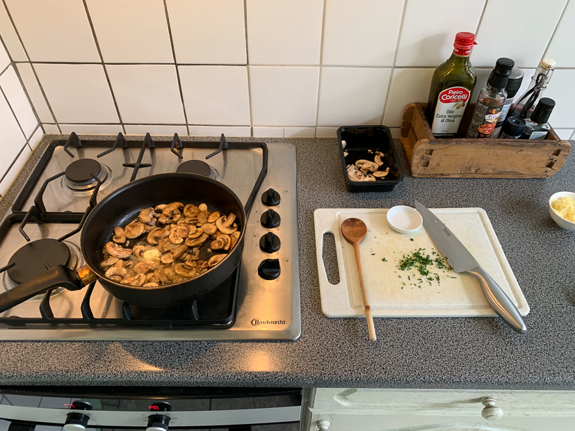 In de koelkast vind ik nog een half bakje gesneden champignons die op moeten. Ik maak er een lekker bladerdeeghapje mee. Was erg lekker dus ook dit recept komt eraan.