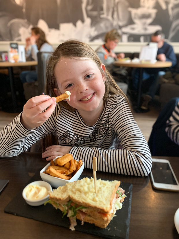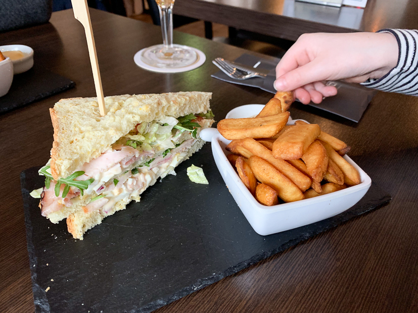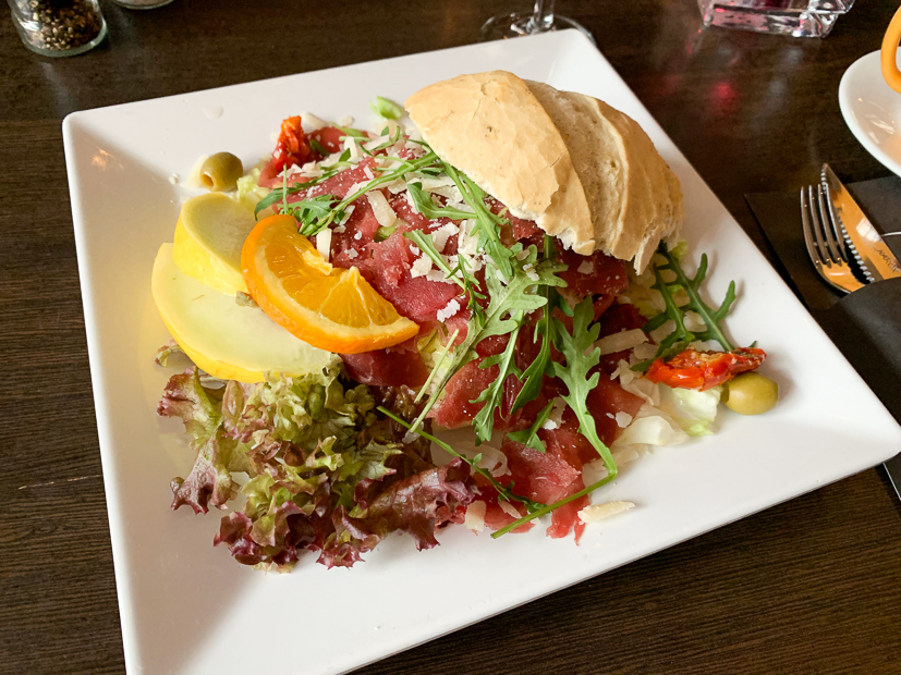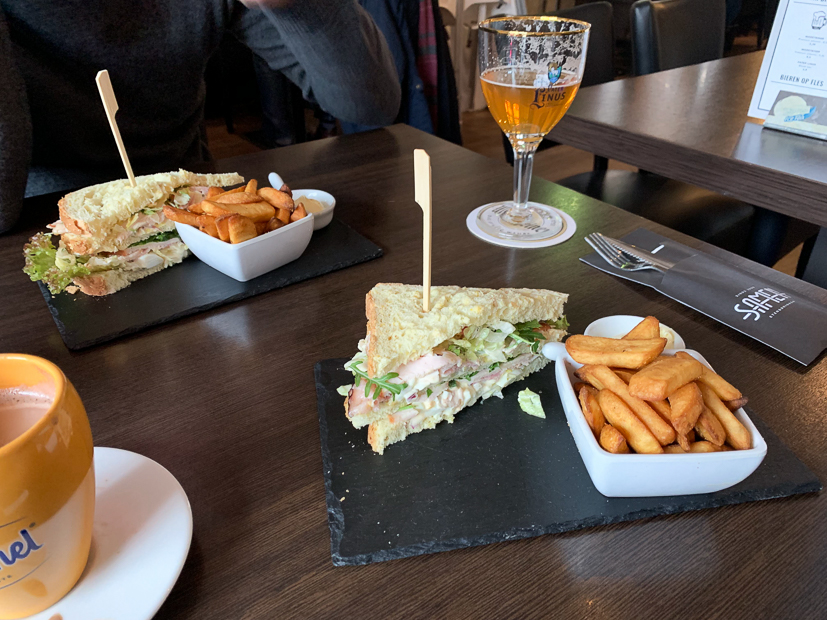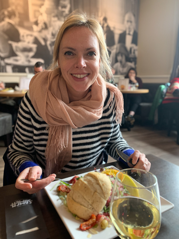 Halverwege de ochtend gaan we even langs bij Johan zijn ouders en daarna gaan we de stad in om te lunchen bij restaurant Samen. Ik neem een witte bol met carpaccio en Johan en Ella-Marie delen een club sandwich met gerookte kip, bacon en eiersalade. Was heerlijk!