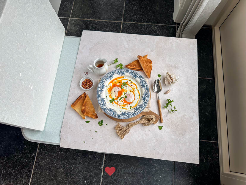 Eind van de ochtend ga ik de keuken in om een lekker recept te maken: Turkse eieren. Het recept heb ik inmiddels met je gedeeld op KL en vind je hier. Zodra ze op de foto staan val ik aan! Ik had nog niks gegeten en moest mijn best doen om de foto’s niet af te raffelen. 😆