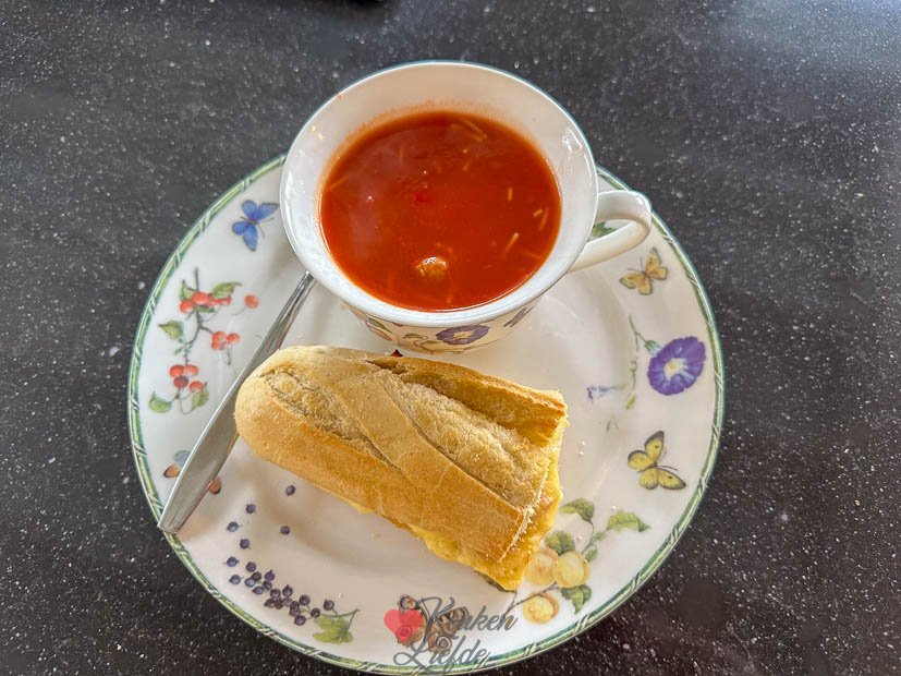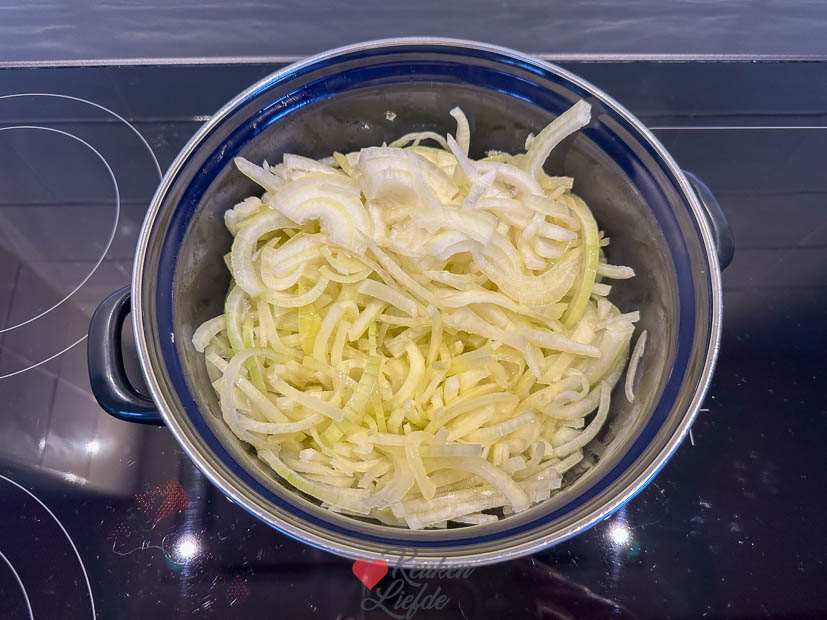 Vanwege het slechte weer breng ik de tiener ’s ochtends met de auto naar school en op de terugweg haal ik gelijk een paar boodschappen voor het avondeten. Johan en ik hebben aan het eind van de middag een zakelijke afspraak voor KeukenLiefde en omdat ik daarna waarschijnlijk geen zin meer heb om te koken maak ik overdag alvast uiensoep.