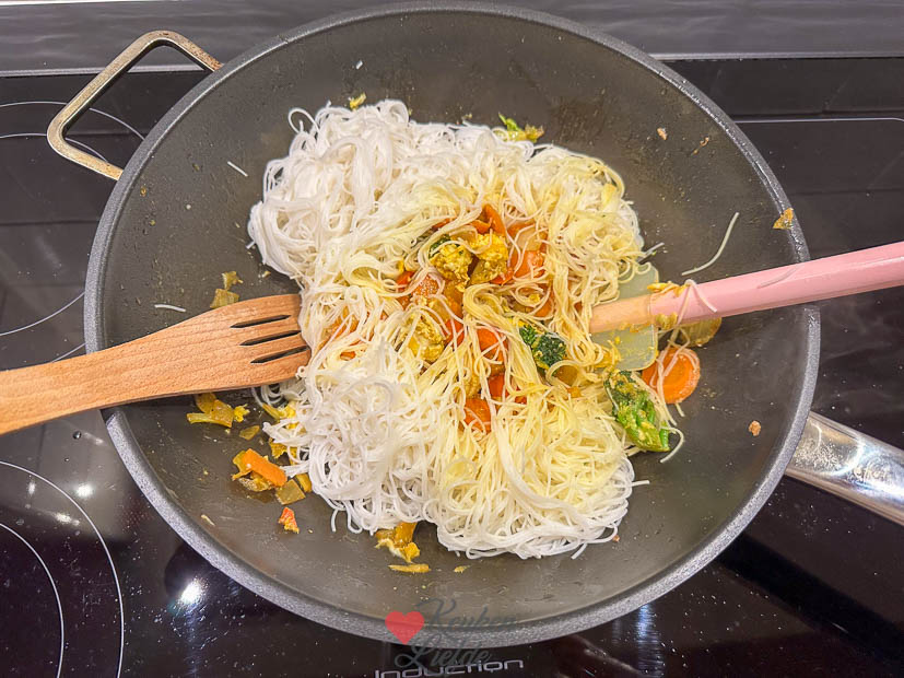 Vandaag rommelen we thuis een beetje aan en verder doen we niet zoveel. ’s Avonds maakte ik mihoen met kip. Die maak je zo: mihoen bereiden volgens omschrijving op het pak. Kipfilet even marineren in wat sojasaus, geraspte gember, uitgeperste knoflook en sesamolie. Dan gaar bakken in wokpan en op bord scheppen. In achtergebleven bakvet gesnipperde ui, knoflook en zak Chinese wokgroenten beetgaar roerbakken. Dan een verkruimelde kippenbouillontablet, theelepel kerriepoeder en theelepel sambal manis erbij en even meebakken tot bouillontablet is opgelost. Ik voegde ook nog 2 eieren toe (wat ruimte maken in de pan en roerei van maken, dan met de rest mengen). Uitgelekte mihoen erdoor husselen en kip erbij en mengen. Als je het te flauw vindt kun je nog een scheutje sojasaus of oestersaus toevoegen. Opscheppen en smullen.