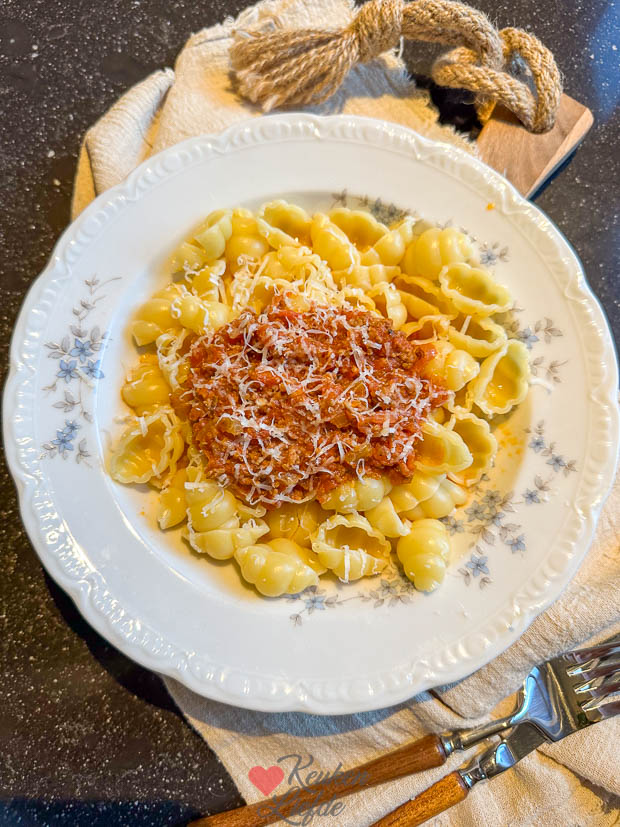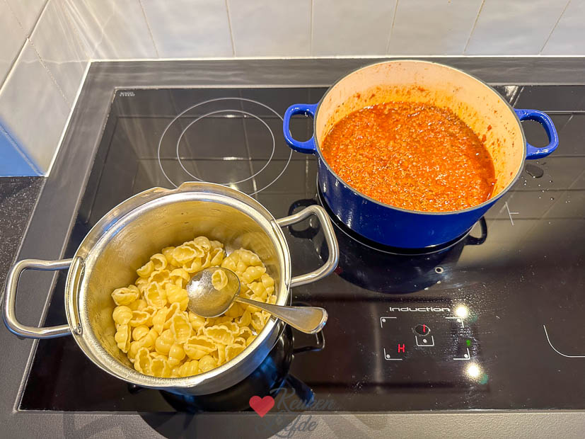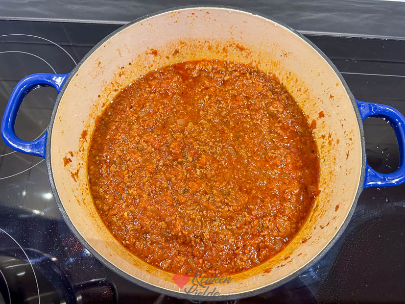 En zo is het weekend weer voorbijgevlogen en gaat iedereen weer aan het werk en naar school. Ik werk ’s ochtends en ’s middags thuis op kantoor. Tussendoor maakte ik alvast de bolognesesaus voor het avondeten zodat hij lekker lang kan pruttelen. Ik liet hem ongeveer 4 uurtjes zachtjes pruttelen tot het vlees en de groenten heel zacht waren en de saus super smaakvol. Ik gebruikte dit recept voor de bolognesesaus maar verving de passata door een blik tomaten. Komt niet zo nauw, het kan allebei. Als je maar tomatensaus gebruikt van goede kwaliteit en met zo min mogelijk rotzooi eraan toegevoegd. Ik kookte er ’s avonds wat pasta bij.