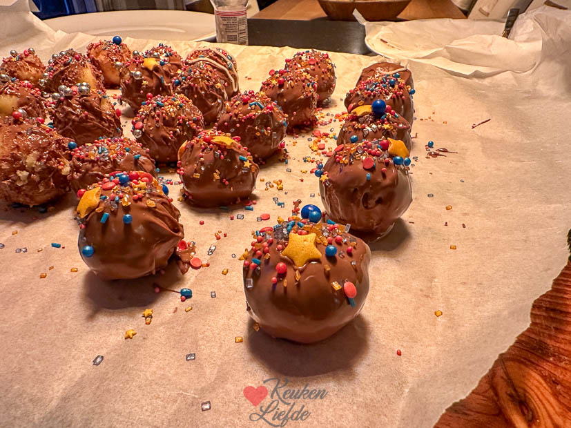 5 december. De tiener is vroeg thuis vandaag en duikt de keuken in om cakepops zonder stokje te maken. Maar wel met heel veel suikerstrooisels (die ik een week later nog overal terugvind). ’s Avonds is het pakjesavond en gaan we gezellig kaasfonduen. Ik mocht vandaag ook het eerste BK pakje openmaken, zie de reels in onze IG voor het unboxing filmpje.
