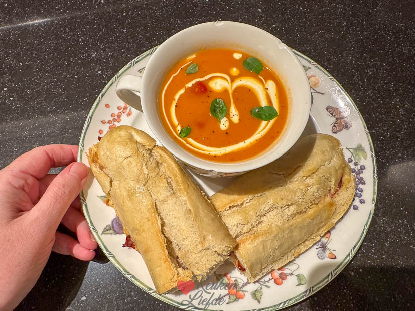 Voor het avondeten maakte ik ’s avonds een verse tomatensoep met een ham-kaaspanini. Johan at het laatste kliekje zuurkool met de aardappel gratins.
