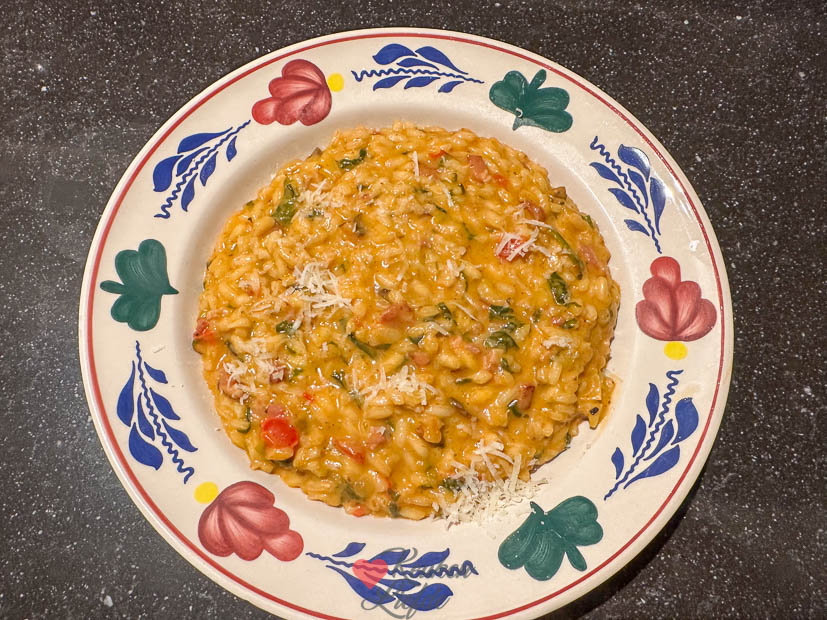 De diamond painting schiet nog totaal niet op (hij is ook veel groter dan degene die we vorig jaar hadden) dus tussen de bedrijven door leg ik wat steentjes. Begin van de middag, net als ik nog een kerstrecept wil gaan maken, belt dochterlief op dat ze op school staat met een lekke achterband en of ik haar even op kan halen. En zo worden de plannen weer gewijzigd. De fietsenwinkel vlakbij haar school zit dicht vandaag dus we kunnen de fiets pas morgen laten maken en waarschijnlijk woensdag weer ophalen. 🙄 Voor het avondeten maak ik risotto waar ik alle kliekjes groenten in gooi die ik tegenkom in de koelkast. Dat ruimt lekker op. En hij was heerlijk.