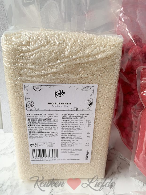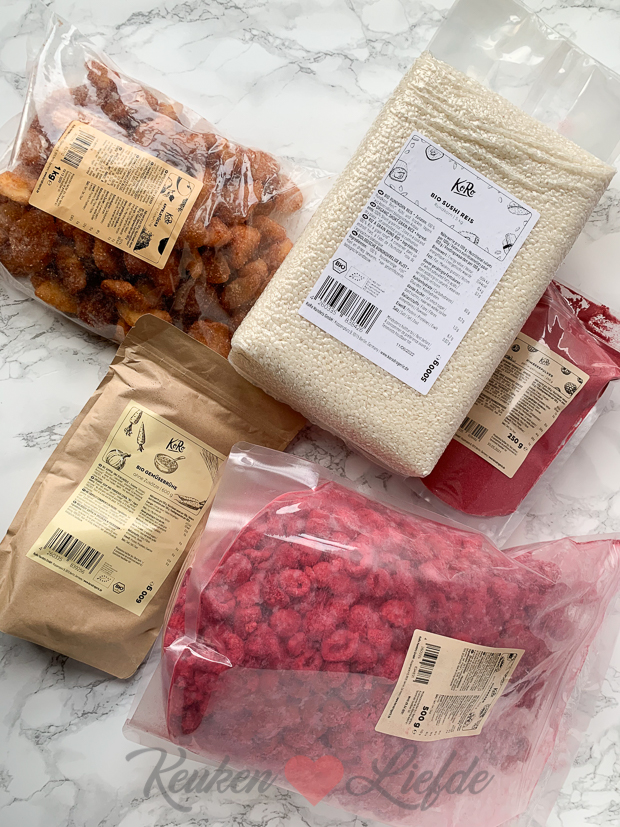 De gevriesdroogde frambozen bevatten geen vocht meer dus je kunt ze goed verwerken in gebak. Ik zit al te denken om ze te verwerken in een cheesecake of ander gebak. Heeft er iemand nog recept ideeën voor de gevriesdroogde frambozen en het frambozenpoeder? Dan hoor ik het graag! De bouillonpoeder vind ik handig om in huis te hebben. Ik gebruik vaak een bouillonblokje tijdens het koken voor bijv. sauzen of risotto en deze bouillon is zonder suiker en chemische of synthetische additieven. Ook is losse bouillonpoeder beter te doseren dan een blokje. Een grootverpakking sushirijst komt hier ook wel op aangezien we sinds de aanschaf van de sushi bazooka in een sushi fase zitten. Trouwens, mocht je ook iets willen bestellen in hun webshop? Met de kortingscode: KEUKENLIEFDE krijg je 5% korting op je bestelling!