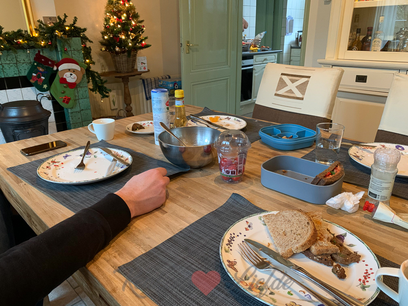 Johan is vrij vandaag en mag de komende twee weken genieten van een welverdiende kerstvakantie. Ella-Marie haar kerstvakantie begint ’s middags om twaalf uur. Ze neemt een vriendinnetje mee om te spelen, dus lunchen we vandaag met z’n vieren. Omdat we niet konden kiezen eten we pannenkoeken, poffertjes en belegde broodjes, allemaal door elkaar. 🙂