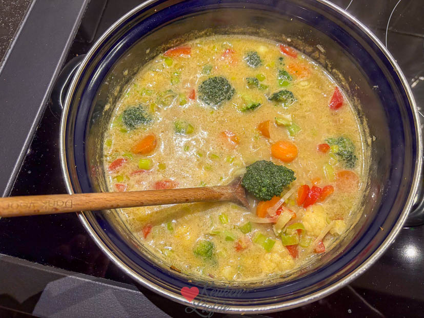 Zaterdag was een rommeldagje. Ella-Marie had een voetbalwedstrijd in Nijmegen en Johan was deze keer chauffeur en grensrechter. Ik vermaakte me ondertussen thuis met poetsen en boodschappen doen. ’s Avonds maakte ik groentesoep met kaastortellini en gehaktballetjes erin en bakte een stokbroodje af om erbij te eten. Simpel en lekker!