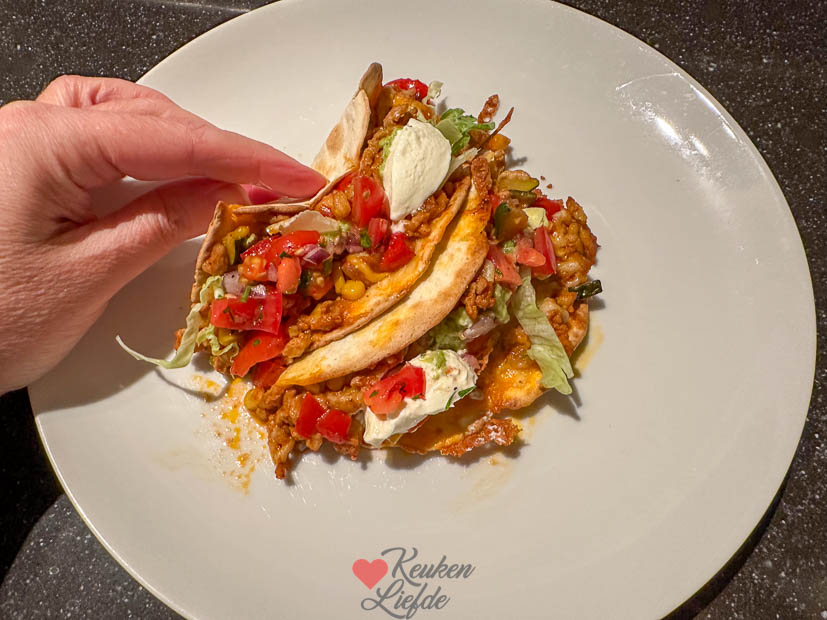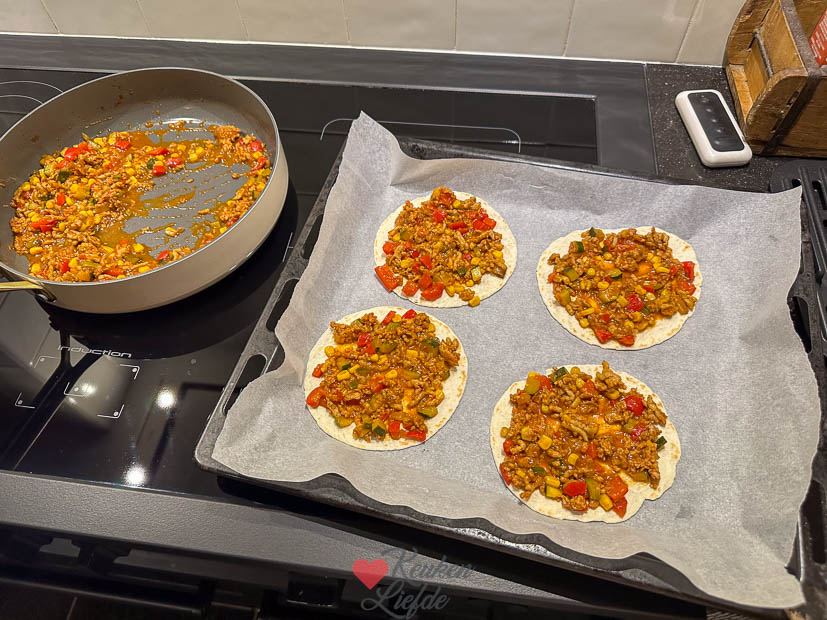 Vandaag maak ik tostada’s met kipgehakt voor het avondeten. Dit recept waar ik extra blokjes courgette aan toevoegde. Dit is momenteel een van mijn favoriete, snelle gerechtjes. Ik top ze na het bakken in de oven nog af met tomatensalsa, guacamole en zure room. Zo lekker!