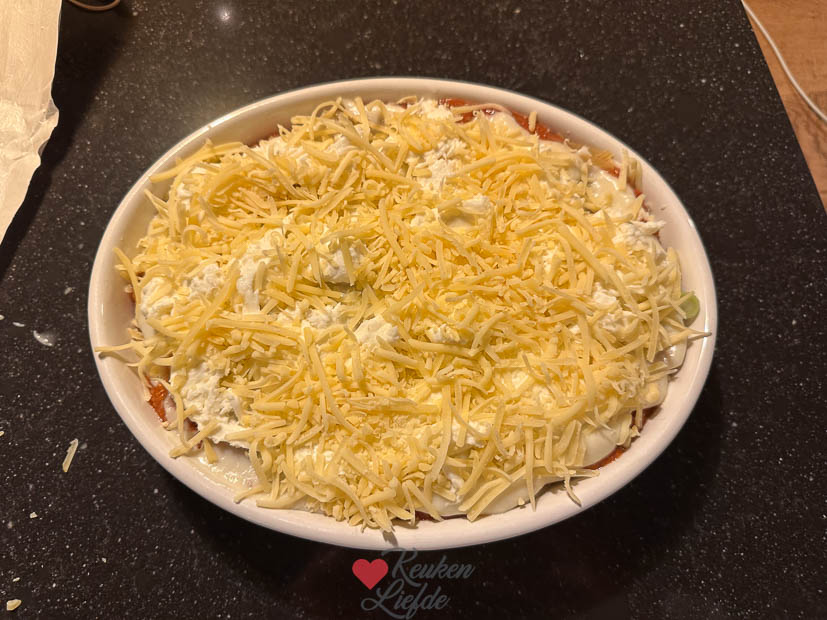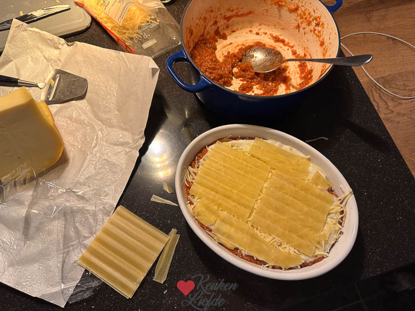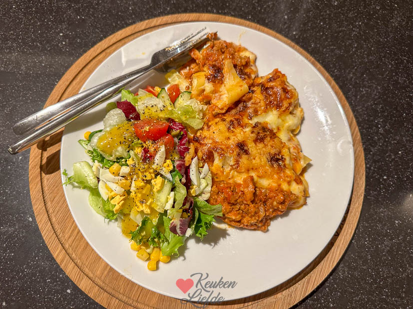 Ik zat al vroeg in de auto om de tiener naar school te brengen en haalde daarna een paar boodschapjes. Weer thuis kroop ik achter de computer om een paar uurtjes te werken en ’s middags haalde ik de tiener weer op. Ik had nog behoorlijk wat bolognesesaus over van gisteren en besloot lasagne te maken voor het avondeten. Ik hoefde er alleen bechamelsaus bij te maken en laagjes saus en lasagnebladen op te bouwen in de ovenschaal. Johan maakte er een lekkere salade bij. Smullen dit!