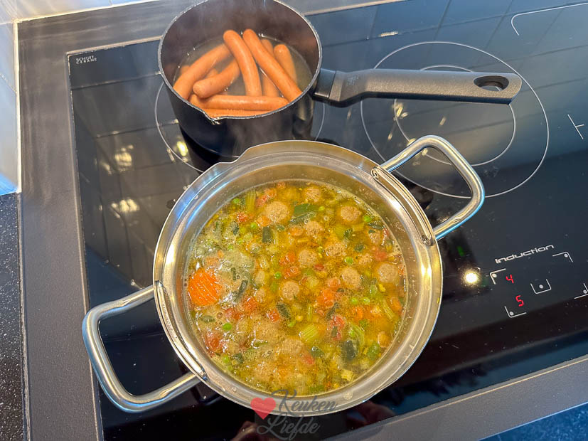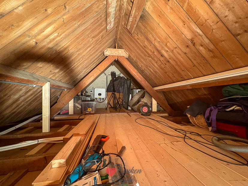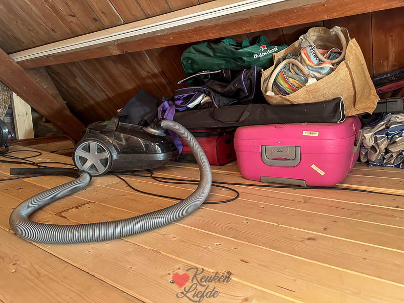 Johan zijn vader komt vandaag weer helpen met klussen. Ze gaan verder met het maken van de vloer op zolder. Bij de koffie was er natuurlijk een stukje taart en voor de lunch maakte ik een pan groentesoep met ballen en er waren bolletjes met worst. De tiener had ’s middags een voetbalwedstrijd en ik maakte het huis schoon en deed boodschappen.
