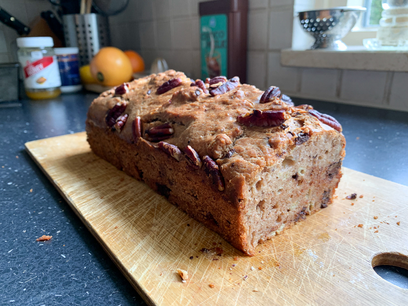 ’s Middags wippen Ella en ik even langs mijn ouders. Mijn moeder staat zoals altijd in de keuken en schuift net deze bananencake in de oven.