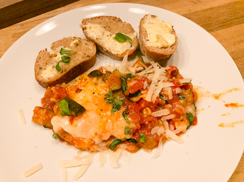 Als we thuiskomen is het al avond en staat Johan in de keuken het avondeten te maken. Op het menu staat heerlijke ratatouille met ei en stokbrood! Echt, hier mag je mij en Johan ’s nachts voor wakker maken.