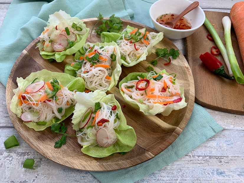 Ik maak weer twee KNL-recepten namelijk een huzarensalade met beenham en gevulde slaschuitjes met Thaise rijstnoedelsalade. Lekker!