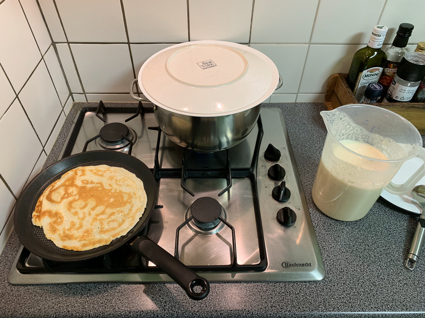 Als we ’s avonds naar binnen gaan steekt Johan de openhaard aan, kijkt Ella de film ‘Annie’ en duik ik de keuken in om pannenkoeken te bakken.