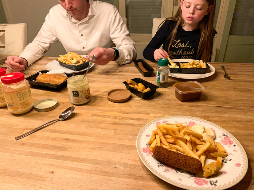 We slapen lekker uit en gaan ’s middags naar de verjaardag van het zoontje van vrienden. Als we thuiskomen moet er natuurlijk nog even op de trampoline gesprongen worden. 🙂 ’s Avonds hebben we geen zin meer om te koken en halen we een frietje.