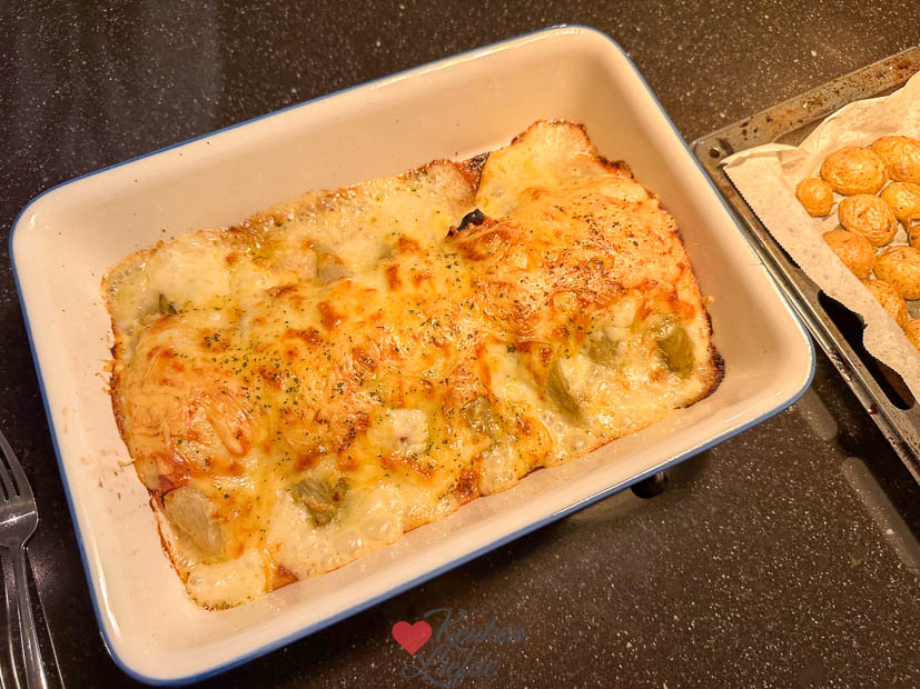 Woensdag kwamen de krantjes en folders kwamen binnen dus ging ik alvast lekker vouwen. 🤨 Verder maakte ik granola want die was op en vergat de timer te zetten. Hij kwam zwart uit de oven. Kak! Daarna door met het avondeten: witlof met ham en kaas en bechamelsaus uit de oven. Gruwelijk lekker! Dit recept. Erbij krieltjes uit de oven die ik eerst had voorgekookt.
