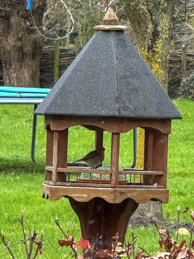 Er zitten bij ons alweer koolmeesjes in het vogelhuisje. Ik zie ze druk in de weer als ik uit het keukenraam kijk. Zo leuk om te zien. En in het vogelvoederhuis is het ook een drukte van jewelste. Dit roodborstje kwam zaterdagmiddag even lunchen.
