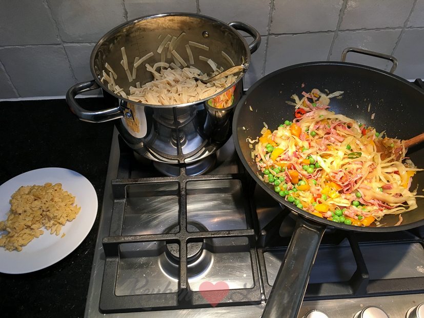 Ik maak een grote pan Chinese bami met wittekool, paprika en roerei. Het recept ga ik met je delen.