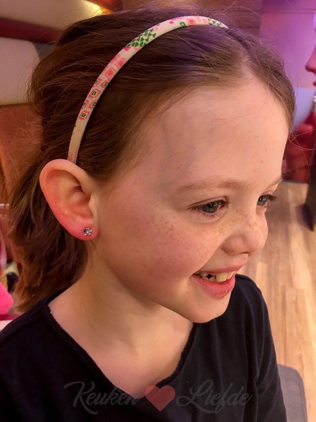 ’s Middags gaan we de stad in, want Ella-Marie wilt oorbellen laten schieten. Twee jaar geleden probeerden we het ook al, maar dat liep uit op een fiasco. De juwelierszaak waar we het toen lieten doen, kon maar een oor tegelijk doen. Het pistool maakte zoveel lawaai dat Ella-Marie het andere gaatje niet meer wilde laten prikken. De afgelopen twee jaar wilde ze er niks meer van weten, tot vorige week. Van de een op de andere dag wilde ze uit zichzelf oorbellen laten schieten. Dit keer zijn we natuurlijk wel naar een zaak gegaan, waar ze twee oren tegelijk doen … Jaaaaaaaaaa!!!!!!!