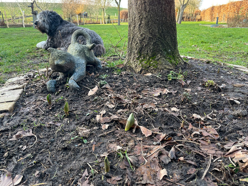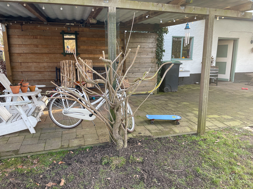 - De blauwe regen die tegen de zijkant van ons huis stond waar over een paar weken een raam komt werd door Johan hierheen verplaatst. Hopelijk slaat hij aan.