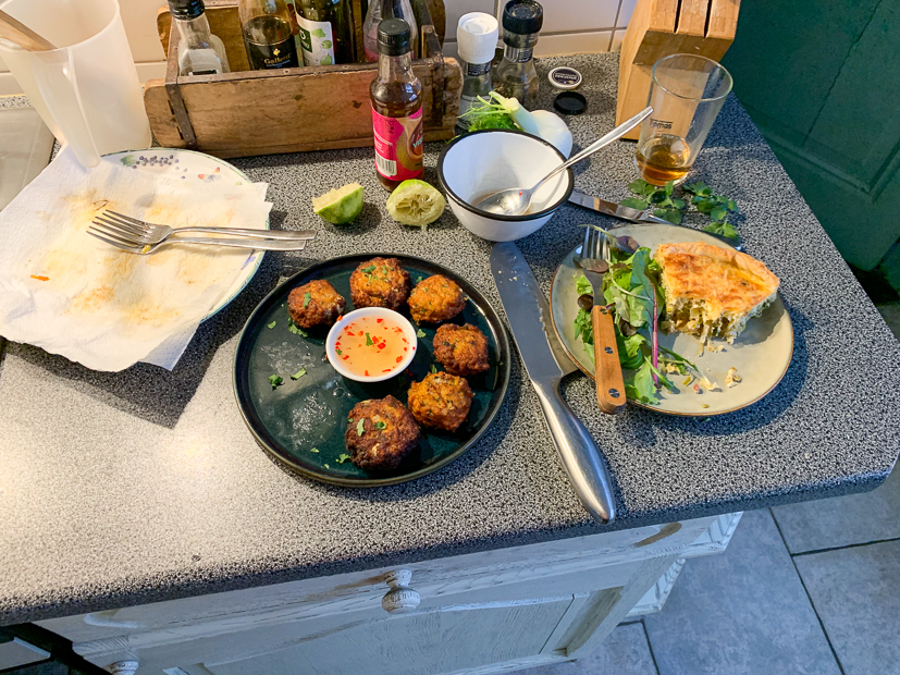En ik sta weer in de keuken. Normaal deel ik altijd foto’s van ons avondeten in dit Kijkje, maar omdat ons avondeten nu bijna volledig bestaat uit gekookte gerechten voor de website en het kookboek is er niet zoveel om te laten zien. Daarnaast vergeet ik ook vaak om foto’s te maken omdat al mijn dagen er hetzelfde uitzien: opstaan, paar uurtjes op kantoor werken, de keuken in om te koken, fotograferen, opruimen, wandelen met Nacho, avondeten en avond houden.