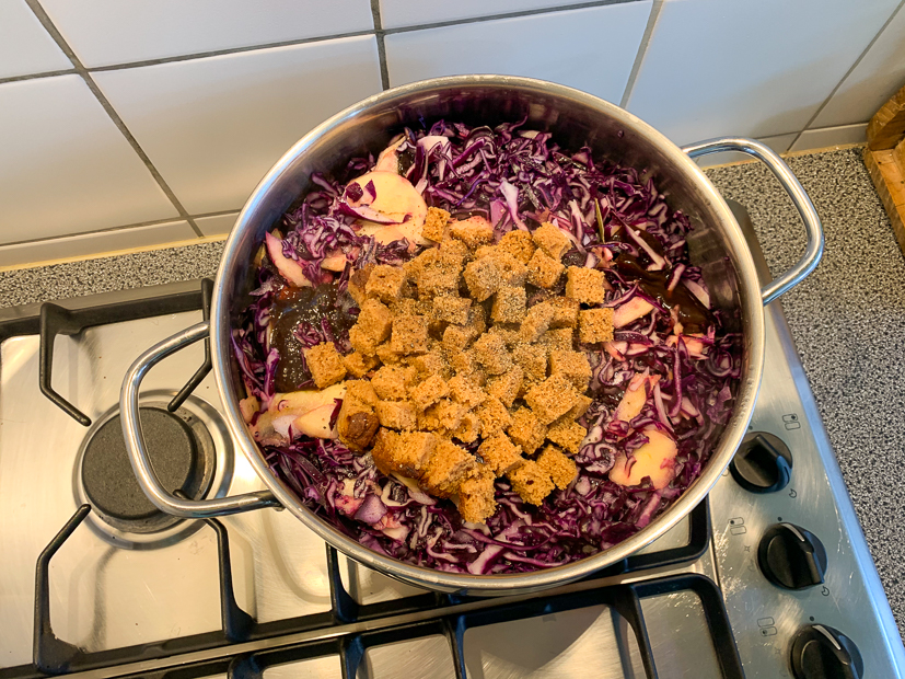 Voor het avondeten had ik eigenlijk een ovenschotel willen maken met rodekool, gehakt en aardappelpuree maar ik had in plaats van rundergehakt kipgehakt uit de vriezer gehaald. In plaats van een ovenschotel stonden er dus kipburgers op het menu ’s avonds. Ook lekker!