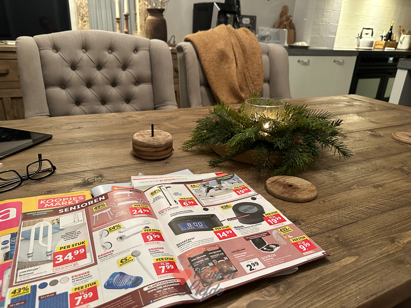 Het is weer een doodgewone werk- en schooldag voor iedereen. Ik werk thuis op kantoor en schrijf onder andere het Kijkje die ik daarna publiceer. Eind van de middag blader ik in de keuken de weekfoldertjes even door en ga ik aan de slag met het avondeten. Op het menu staan gebakken aardappels met groenten uit de oven en vissticks.