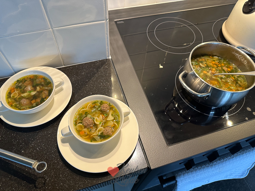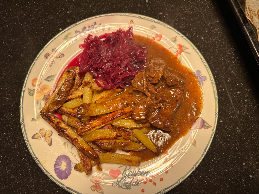 Hondsberoerd word ik ’s ochtends wakker. Jakkes! Johan is ook al een paar dagen niet fit en nu lopen we met z’n tweeën te hoesten en proesten. Hopelijk blijft Ella-Marie bespaard. Het liefst blijf ik op bed liggen maar dat is vandaag geen optie. Nacho moet ’s middags naar de trimmer en ik moet een campagnerecept maken en fotograferen. Donderdag ga ik het recept delen met tevens een leuke winactie, dus houd onze social in de gaten! Als ik Nacho weer heb opgehaald bij de trimmer rijd ik langs de garage om mijn auto neer te zetten. Morgen krijgt hij een onderhoudsbeurt dus handig om dat nu alvast te doen. Bovendien is de wandeling terug naar huis goed voor ons. Halverwege komt Ella ons tegemoet fietsen. Die was net thuis en wist dat ik met Nacho in het dorp liep. Weer thuis ga ik nog heel even op kantoor zitten om een paar dingen af te maken maar helaas wilde de website niet meewerken. Frustrerend! Helemaal als je berichtjes krijgt van bezoekers die je recept aan het maken zijn en ontdekken dat de website het niet meer doet. Aaargh! We hebben er een paar dagen last van gehad, vooral rond etenstijd wanneer de piekbalasting hoog is. Excuses aan iedereen die er hinder van heeft gehad. ☹️Het probleem is inmiddels weer verholpen gelukkig.