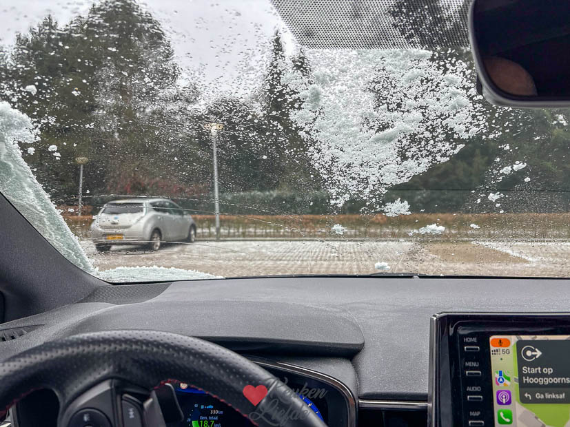 Johan stuurt me ’s ochtends een foto door van een besneeuwd autoraam. Vanavond is het einde van de beurs en komt hij weer thuis. De tiener en ik redden ons prima samen maar we zijn allebei toch blij dat hij ’s avonds weer naar huis komt. Nog gezelliger als we compleet zijn. 🥰