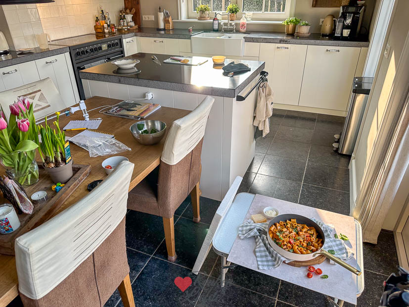 Mijn werkdag ziet er weer net zo uit als gisteren en eergisteren. ’s Ochtends werk ik op kantoor, ’s middags maak ik een nieuw recept. Dit keer een makkelijke eenpanspasta met kip en romige tomatensaus. Supermakkelijk en heerlijk. Het recept en de video komen denk ik morgen online.