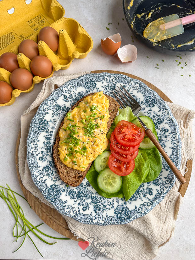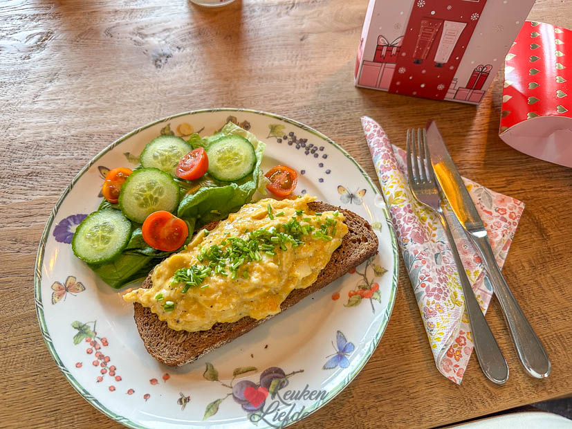 Ik breng Ella naar school en haal onderweg naar huis boodschappen. Bij de AH hebben ze tempura garnalen in de bonus en die neem ik mee voor de tiener, die is daar dol op. Thuis ruim ik de boodschappen en keuken op, zet een wasje aan en ga aan het werk. ’s Middags maak ik weer een nieuw recept: roerei. Een eenvoudig basisrecept dat verrukkelijk is. De video staat online en vind je hier.