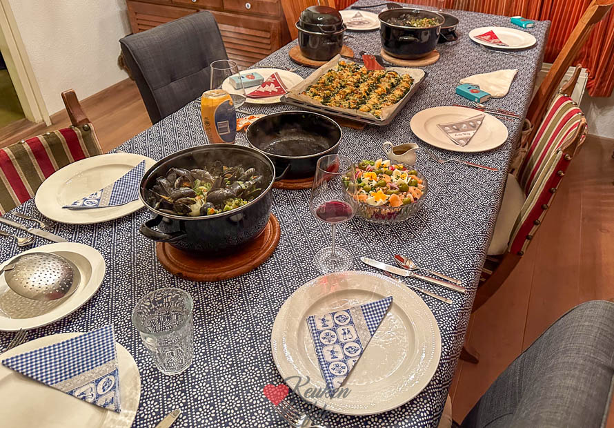 De tiener heeft vandaag geen voetbalwedstrijd. Het was best een pittig weekje voor haar met veel toetsen dus ook wel even lekker dat er vandaag niks op de planning staat. Johan en ik vermaken ons met allerlei klusjes zoals schoonmaken, boodschappen doen en het opruimen van kantoor. Eind van de middag gaan we naar mijn ouders waar we zijn uitgenodigd om mosselen te komen eten. Mijn moeder had de guirlande op de schouw nog niet opgeruimd en dat was wel heel gezellig.